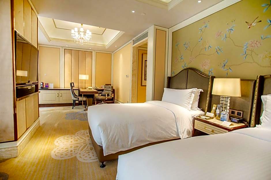 2 Kings Presidential Suite With Lounge Access includes 2 king-size beds 150-183 width plus desk, satellite tv , and bathrobes.